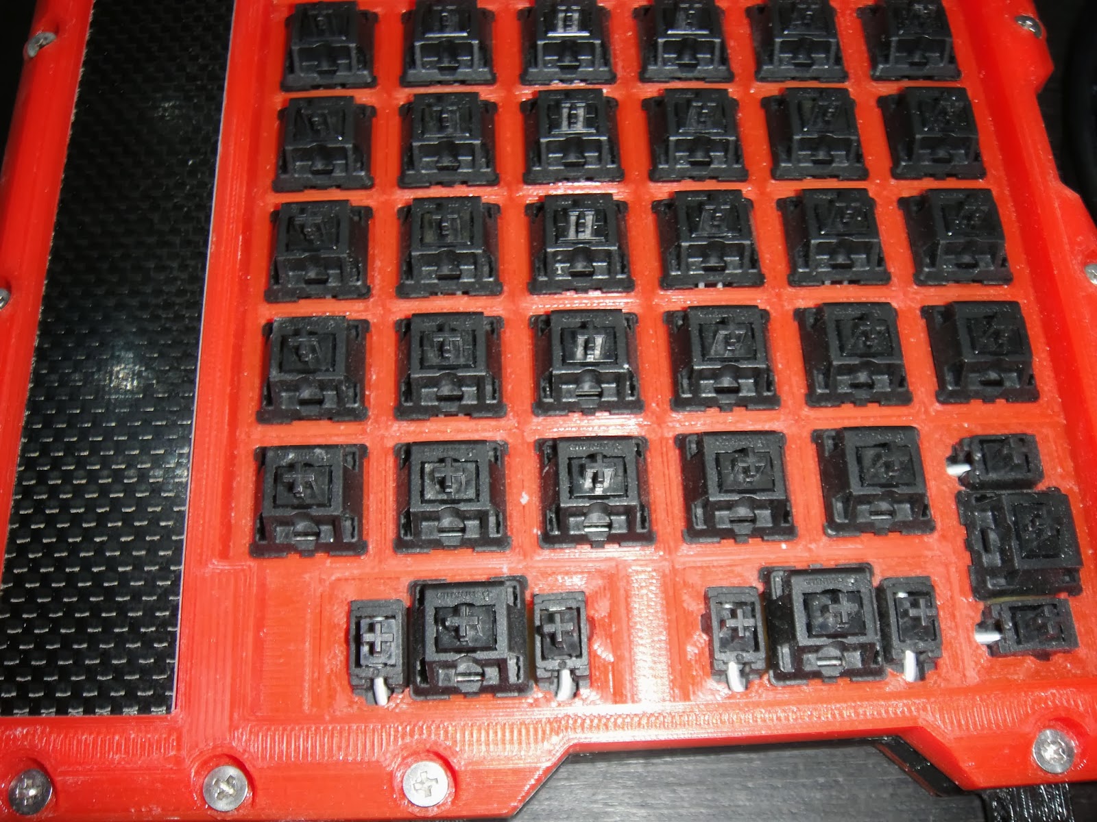 The case is fully 3D printed. The cover for the electronics is made of carbon, I personally like the way it looks. I even added folding feet to change the angle of the keypad.